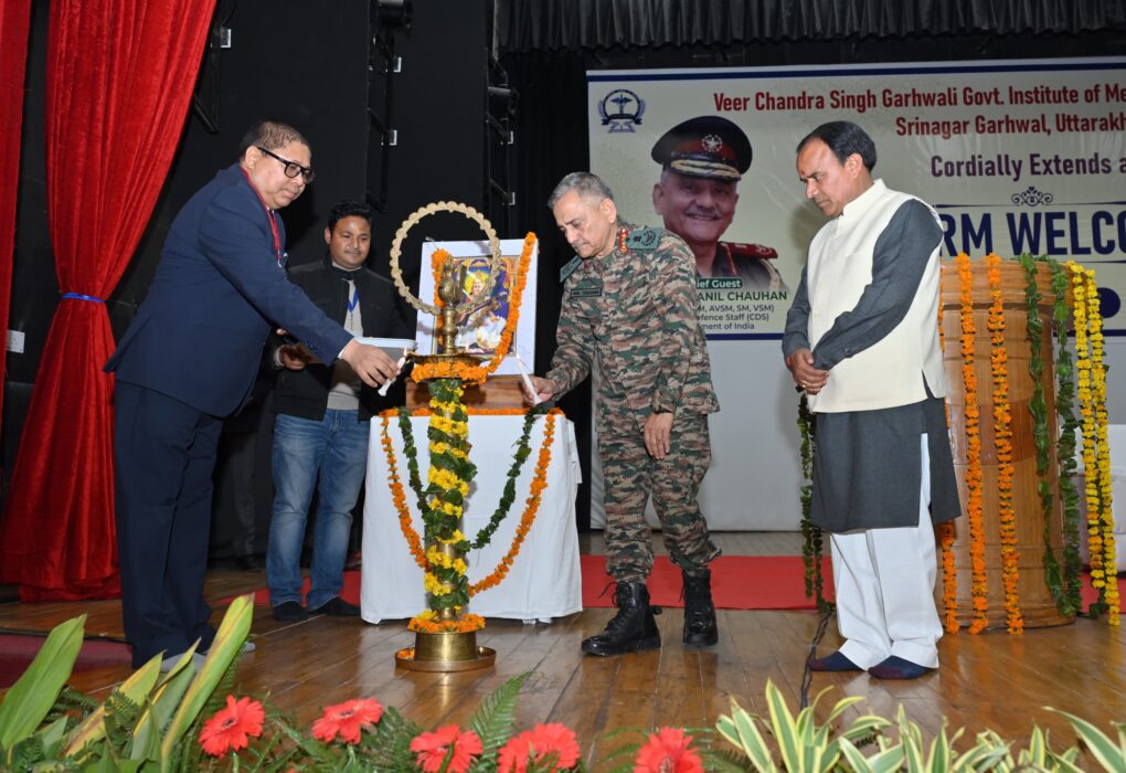 पौड़ी/21 फरवरी 2026श्रीनगर स्थित मेडिकल कॉलेज में देश के चीफ ऑफ डिफेंस स्टाफ जनरल अनिल चौहान के आगमन पर भव्य कार्यक्रम का आयोजन किया गया। कार्यक्रम का शुभारंभ मुख्य अतिथि सीडीएस जनरल अनिल चौहान ने प्रदेश के चिकित्सा स्वास्थ्य एवं चिकित्सा शिक्षा मंत्री डॉ. धन सिंह रावत तथा मेडिकल कॉलेज के प्राचार्य डॉ. आशुतोष सयाना…