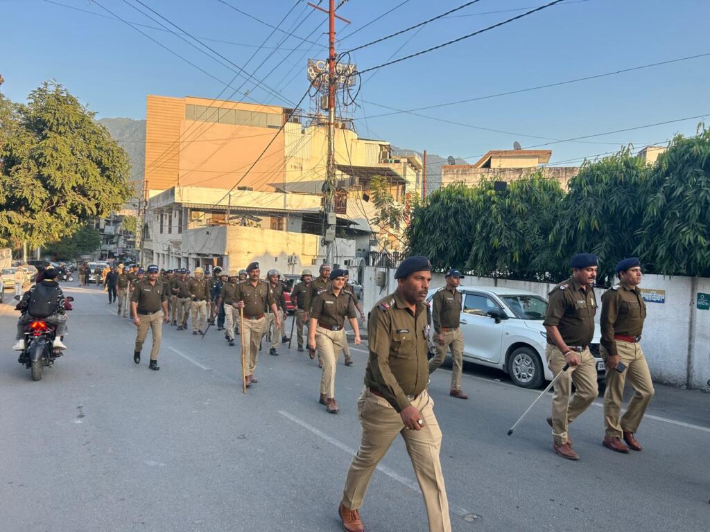 आमजन को सुरक्षा का भरोसा व सतर्कता का संदेश देने के लिये दून पुलिस ने निकाला फ्लैगमार्च