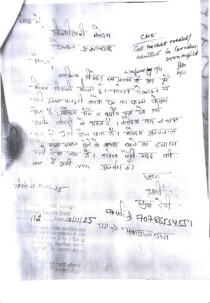 10 नवंबर को जनदर्शन में सुधा ने जिलाधिकारी से बेटे के उपचार की लगाई थी गुहार;