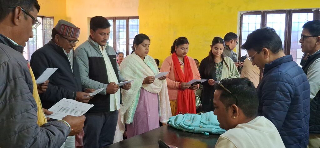 इस अवसर पर सभी निर्वाचित जनप्रतिनिधियों को उनके दायित्वों और उत्तरदायित्वों का पालन निष्ठा, ईमानदारी और पारदर्शिता के साथ करने की शपथ दिलाई गई। इस मौके पर सहायक खण्ड विकास अधिकारी सुनील उनियाल ने कहा कि निर्वाचित प्रतिनिधियों ने लोकतांत्रिक परंपराओं का सम्मान करते हुए ग्राम विकास की दिशा में कार्य करने का संकल्प लिया है।उन्होंने बताया कि ग्राम पंचायत की पहली बैठक 26 नवंबर को आयोजित की जाएगी, जिसमें पंचायत के विकास कार्यों पर चर्चा की जाएगी।