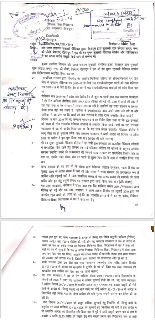 चिकित्सा शिक्षा निदेशक ने पूर्ण वसूली लिए डीएम से की सिफारिश