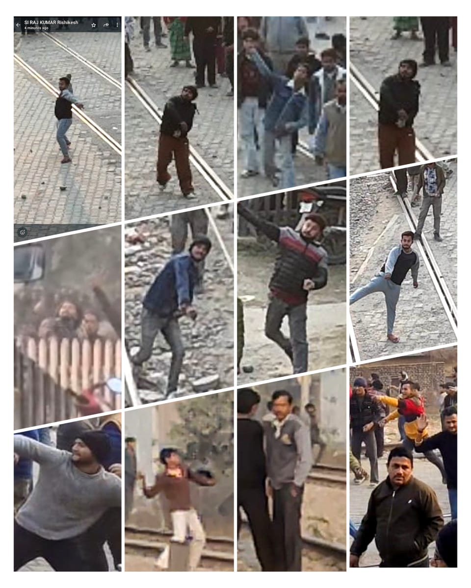 मा0 उच्चतम न्यायालय के आदेश के क्रम में दिनांक 28-12-2025 को ऋषिकेश स्थित वन विभाग की भूमि पर अतिक्रमण हटाने के लिए गई पुलिस, वन विभाग एवं प्रशासन की संयुक्त टीमों पर उपद्रवियों द्वारा आमजन को उकसाकर पत्थरबाजी की घटना को अजांम दिया गया, ऐसे उकसाने वालो को चिन्हित किया जा रहा है, साथ ही ऐसे उपद्रवीयों को भी चिन्हित किया जा रहा है, जिनके द्वारा पत्थरबाजी की गई, ऐसे उपद्रवी जिनका वन विभाग की भूमि से कोई लेना देना नही व उक्त घटना में उनके द्वारा शामिल होकर लोगो को उकसाकर घटना करवाई गई, उन सभी को मौके पर ली गई फोटो,वीडियो तथा ड्रोन के माध्यम से ली गई कवरेज को देखकर चिह्नित किया जा रहा है, इस आशय से कुछ उपद्रवियों के फोटो,वीडियो प्रकाशित किया जा रहे है। उक्त उपद्रवीयों के सम्बंध में किसी को कोई जानकारी हो तो मो0 नम्बर 9411112815 पर तत्काल सूचना दे। सूचना देने वालों की पहचान गोपनीय रखी जायेगी।