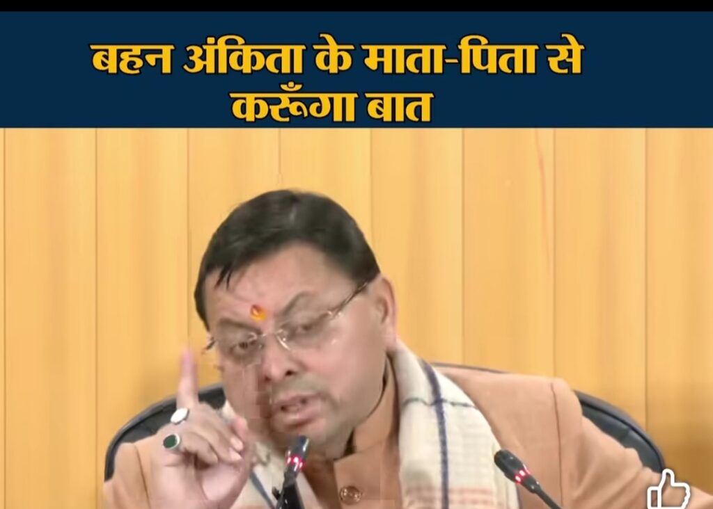 मुख्यमंत्री पुष्कर सिंह धामी का स्पष्ट बयान –अंकिता भंडारी को न्याय दिलाना राज्य सरकार की सर्वोच्च प्राथमिकता