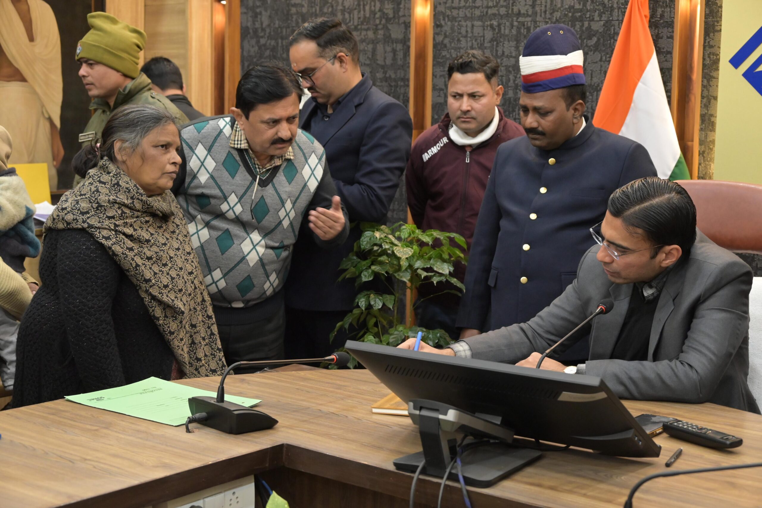 गांधीग्राम निवासी सुनीता देवी ने बताया कि उनके पति विगत 10 वर्षों से बीमार हैं तथा आगामी मार्च माह में पुत्री का विवाह प्रस्तावित है। जिलाधिकारी ने पुत्री के विवाह हेतु शासन की सहायता योजनाओं से आर्थिक सहायता उपलब्ध कराने के निर्देश समाज कल्याण विभाग को दिए।