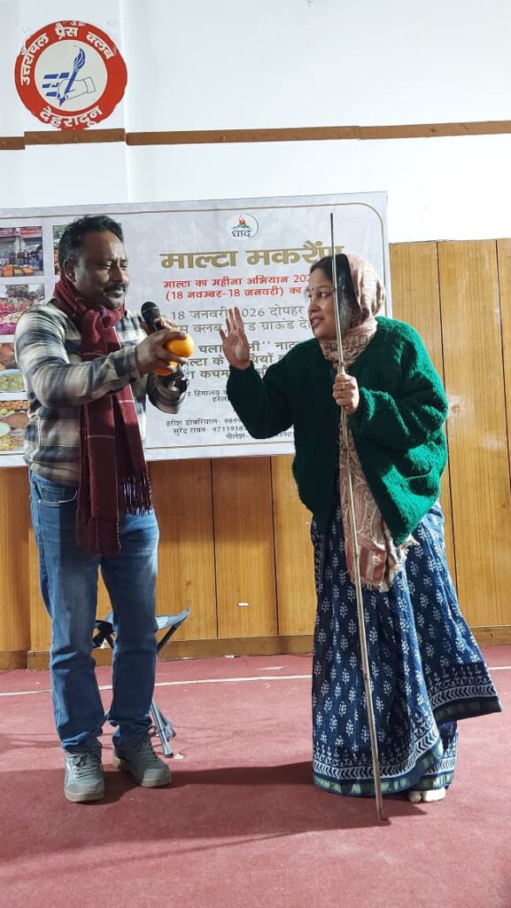हरेला गाँव धाद की पहल पर चल रही माल्टा का महीना अभियान माल्टा मकरैंण के साथ समाप्त हुआ। अभियान का परिचय देते हुए हरेला गाँव के संयोजक देवेंद्र नेगी ने कहा कि तीन बरसों से चल रहा पहाड़ के माल्टे को बाजार दिलवाने के अभियान को इस वर्ष निर्णायक सफलता मिली है और न केवल समाज और बाजार का साथ मिला बल्कि इसके साथ शासन भी खड़ा हुआ।