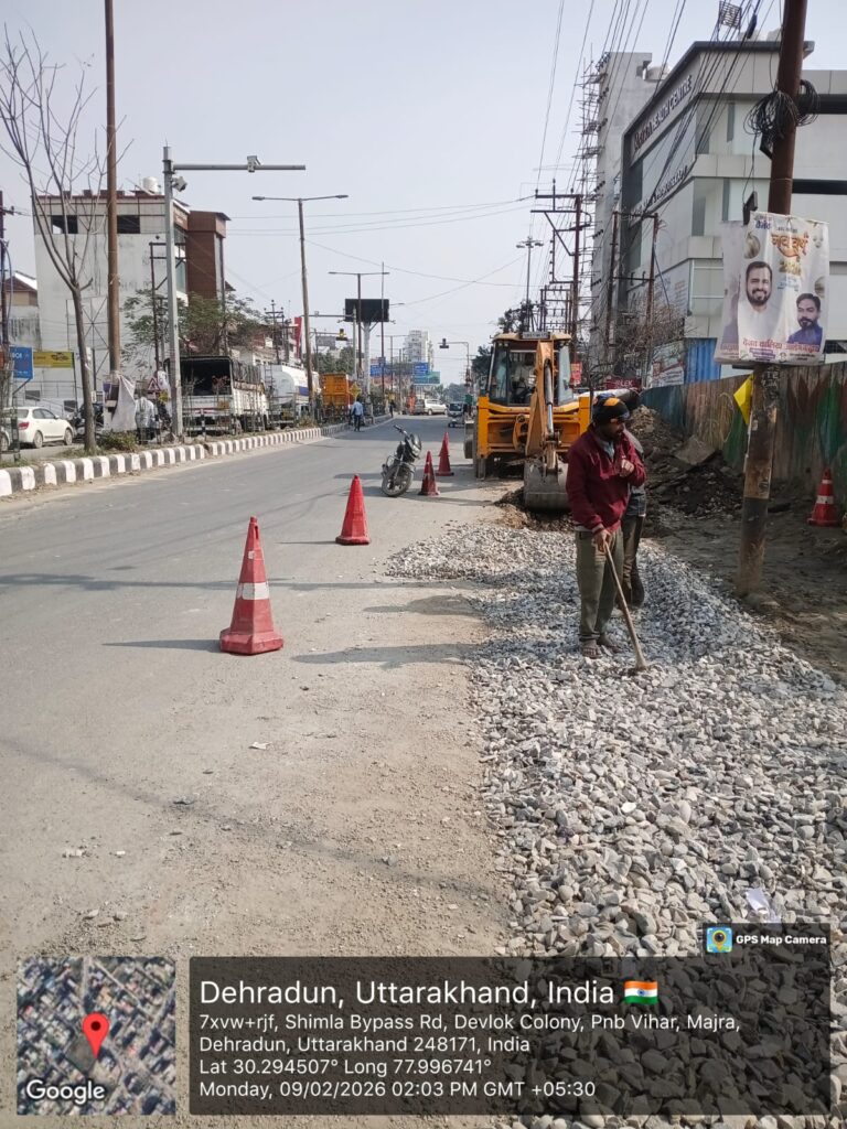 निरीक्षण के दौरान पाया गया कि शिमला बायपास मार्ग पर की गई खुदाई उत्तराखंड पावर कॉर्पाेरेशन लिमिटेड (यूपीसीएल) द्वारा की गई है, जिसके कारण सड़क की सतह क्षतिग्रस्त हो गई है और आवागमन में बाधा उत्पन्न हो रही है। स्थानीय नागरिकों द्वारा धूल, गड्ढों एवं जाम की समस्या की शिकायत भी की गई।