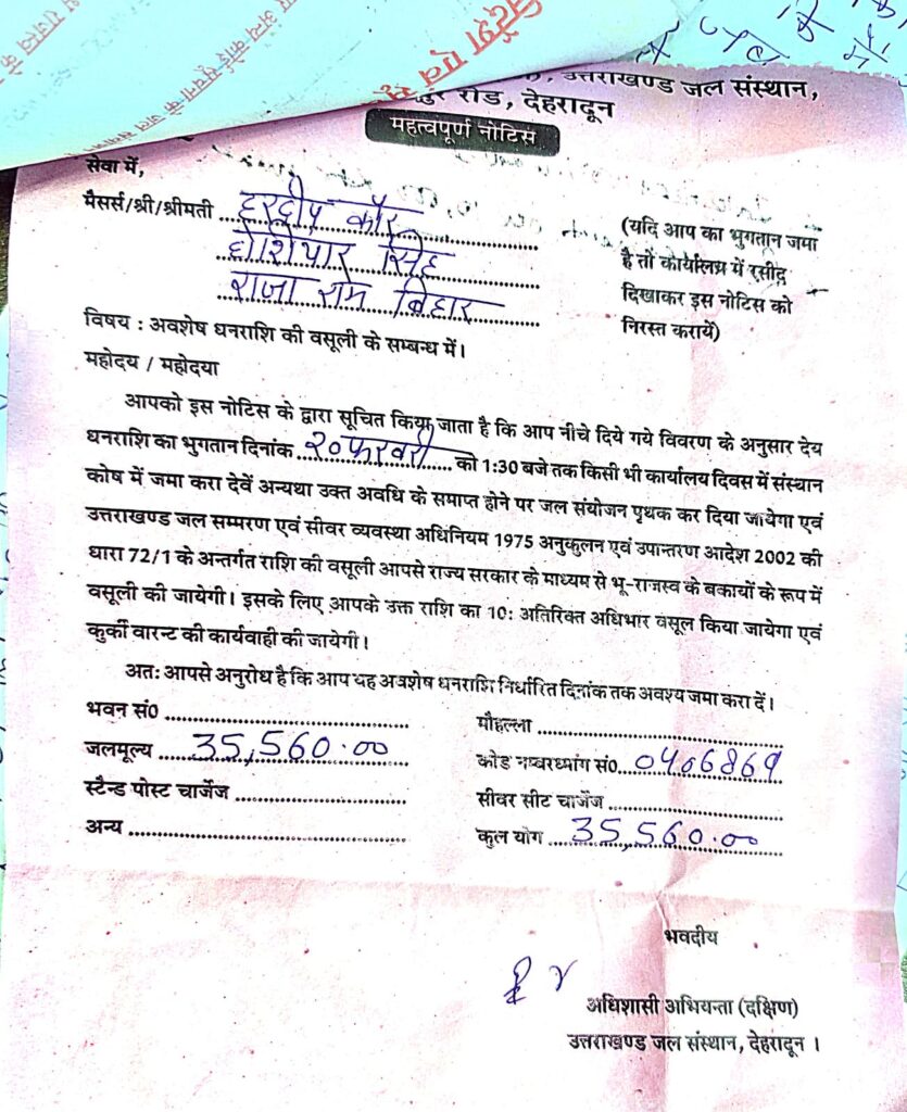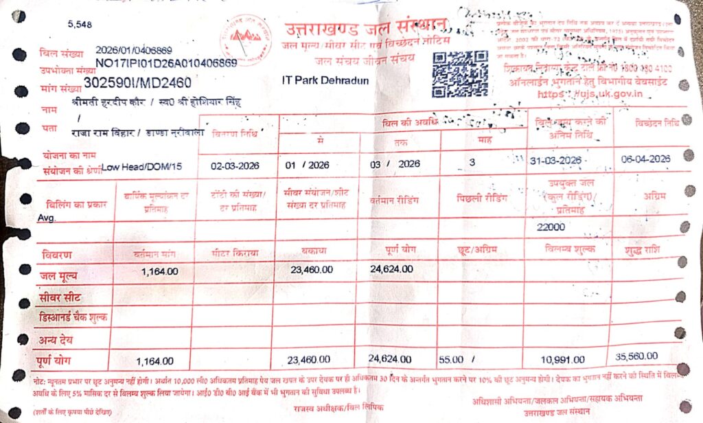 प्रत्येक सोमवार कलेक्टेªट सभागार में जिलाधिकारी सविन बंसल की अध्यक्षता में आयोजित होने वाले जनता दर्शन कार्यक्रम बड़ी संख्या में फरियादी अपनी शिकायतों के निस्तारण हेतु उपस्थित हो रहे हैं तथा फरियादियों की समस्याओं का त्वरित निस्तारण होने से सरकार तथा जिला प्रशासन की कार्यशैली पर जनमानस का भरोसा बढा है। विगत जनता दर्शन कार्यक्रम में सहस्त्रधारा निवासी बुजुर्ग महिला हरदीप कौर ने अपनी व्यथा सुनाते हुए जिलाधिकारी को बताया कि उनका पेयजल बिल 35,000 आ गया है, जिसे वह भरने में असमर्थ हैं। उन्होंने बताया कि वह घर में अकेली रहती हैं, आय का कोई स्थायी साधन नहीं है तथा अक्सर बीमार रहती हैं।
