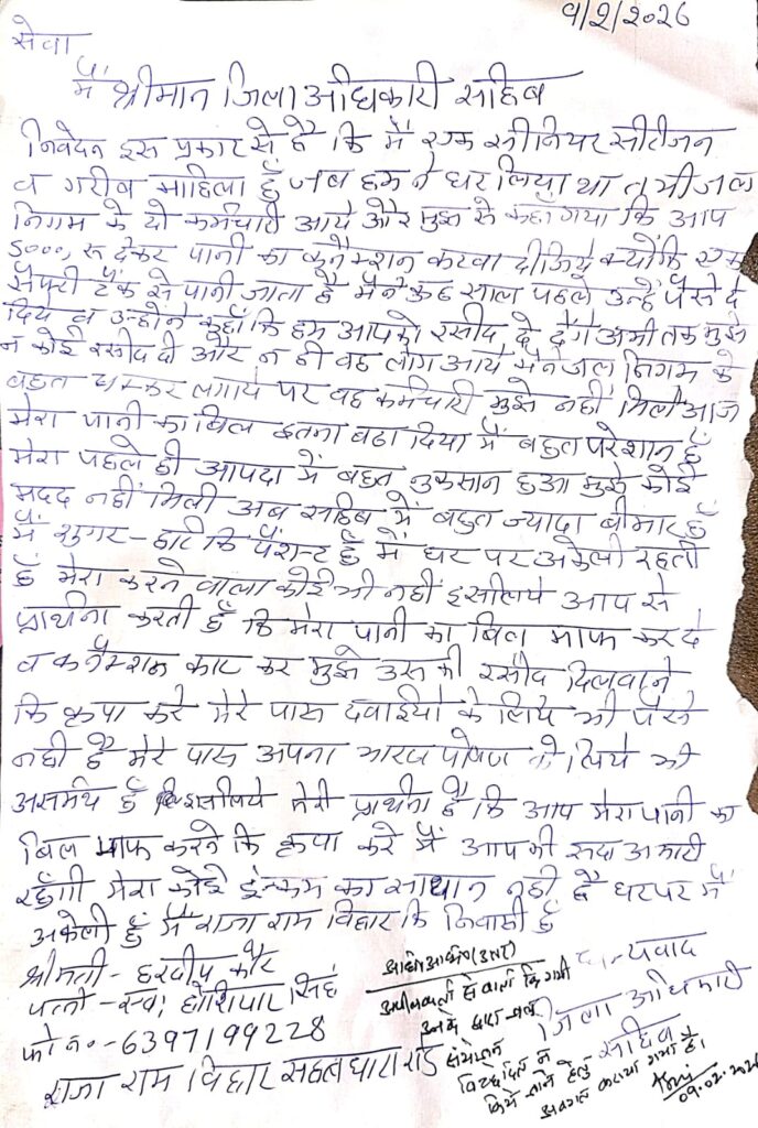 बुजुर्ग हरदीप कौर का 35,000 का पानी बिल 14372 में सेटल; जिला प्रशासन राइफल फंड से जलसंस्थान को किया भुगतान