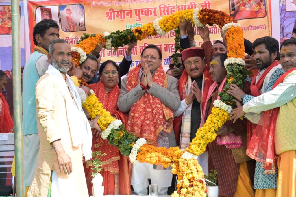 बीरों देवल में आयोजित मां चंडिका महावन्याथ देवरा यात्रा में मुख्यमंत्री पुष्कर सिंह धामी हुए शामिल