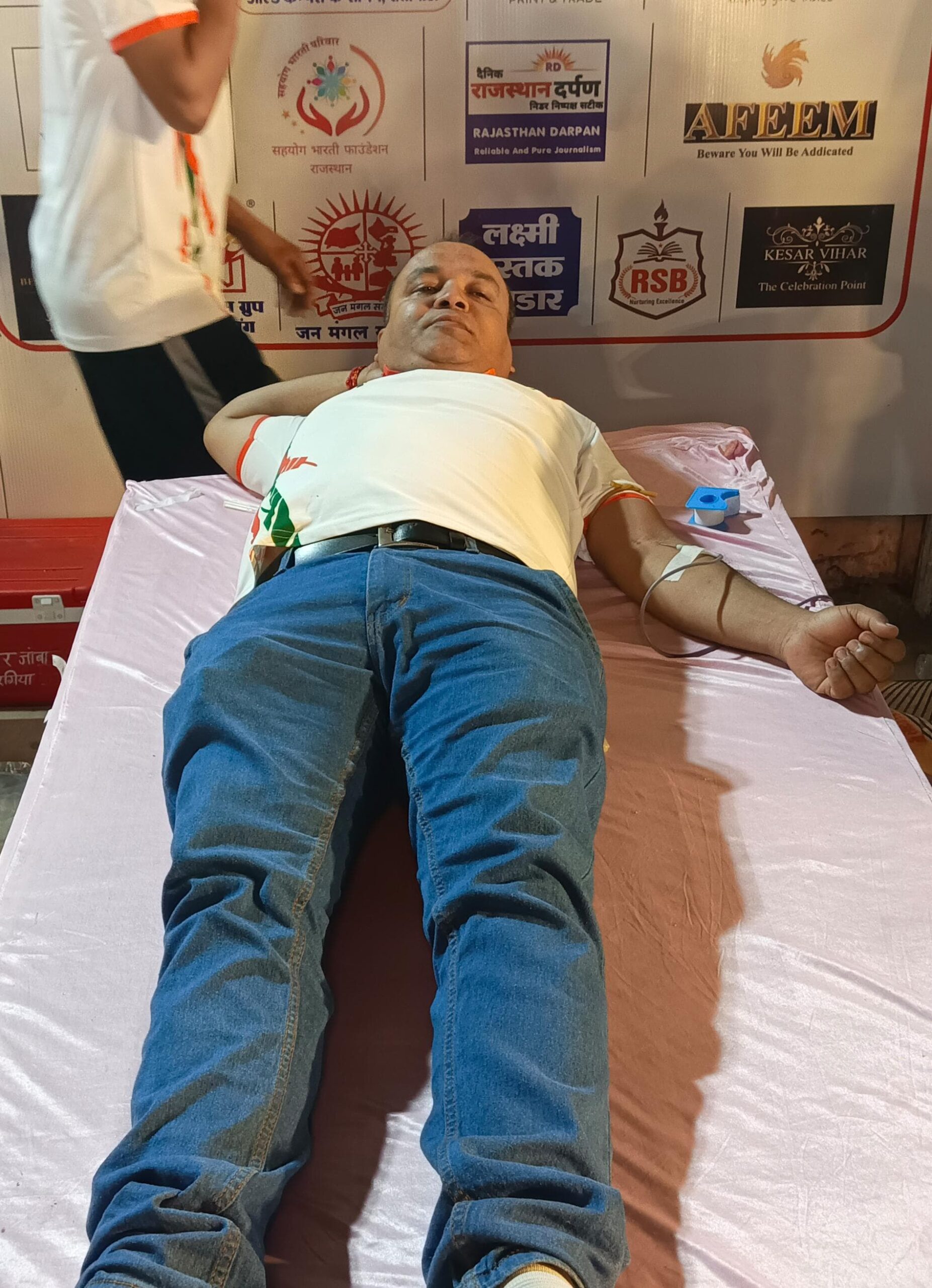 राजस्थान जोधपुर :शहीद स्मारक पर आज महान क्रांतिकारी शहीद ए-आजम भगत सिंह की 118वीं जयंती के अवसर पर वंदे भारत सेवा संस्थान की ओर से विशेष रक्तदान शिविर आयोजित किया गया। इस अवसर पर संस्थान के राष्ट्रीय मीडिया प्रभारी और वरिष्ठ पत्रकार डॉ राकेश वशिष्ठ ने अपना 106 वां रक्तदान कर एक अनोखी मिसाल कायम की। डॉ राकेश वशिष्ठ ने रक्तदान करते हुए कहा कि अभी 106 पर नॉट आउट बैटिंग कर रहा हूं और जब तक ईश्वर स्वस्थ रखेगा रक्तदान की यह बैटिंग लगातार जारी रहेगी क्योंकि रक्तदान एकमात्र ऐसा जरिया है जिसके द्वारा आप किसी इंसान की रगों में लहू के रूप में दौड़ते हुए उसको जीवनदान देने का पुनीत कार्य करते हो