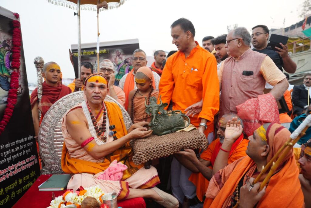 परमाराध्य परमधर्माधिश ज्योतिष्पीठाधीश्वर जगदगुरू शंकराचार्य स्वामिश्री: अविमुक्तेश्वरानंद: सरस्वती जी महाराज द्वारा उत्तरप्रदेश सरकार को 40 दिन के अंदर गौमाता को राज्यमाता घोषित कर प्रदेश में पूर्णतया गोकशी प्रतिबंधित करने हेतु दिए गए समयावधि के 35 दिन पूर्ण होने पर छत्रपति शिवाजी महाराज के जन्म जयंती पर आज काशी के शंकराचार्य घाट पर विशेष कार्यक्रम का आयोजन किया गया।जिसके अंतर्गत सर्वप्रथम ज्योतिष्पीठाधीश्वर शंकराचार्य जी महाराज ने विधिवत गंगापूजन किया।एवं छत्रपति शिवाजी महाराज के चित्र को तिलक कर पुष्प अर्पित किया एवं उपस्थित समस्त लोगों को गौरक्षा संकल्प दिलाकर शिवाजी के गौ ब्राह्मण प्रतिपालक होने पर शास्त्रीय आधार पर विवेचना कर संदेश दिया कि छत्रपति शिवाजी महाराज हिंदवी स्वराज्य के संस्थापक थे।शिवाजी महाराज ने 12 वर्ष की उम्र में एक गौहत्यारे को दंडित कर उसके हाथों से गौमाता को छुड़ाकर गौमाता के लिए प्राण प्रण से लड़ने का उद्घोष किया।सनातनधर्म के शास्त्र कहते हैं कि राजा को गौ ब्राह्मण और देवायतन की रक्षा हेतु कटिबद्ध होना चाहिए।हमारे यहां भगवान राम भी विश्वामित्र के समक्ष प्रतिज्ञा करते हुए कहते हैं गौ ब्राह्मण व राष्ट्रहित के लिए ऋषिवर जो कहें वो पूर्ण करने हेतु मै प्रतिबद्ध हूं।भगवान राम,कृष्ण,आदि शंकराचार्य,राणाप्रताप एवं शिवाजीसिंह ने जो मार्ग प्रशस्त किया उसी मार्ग पर चलते हुए शिवाजी महाराज के पुत्र संभाजी महाराज ने बुधभूषणम ग्रन्थ में इस बात को दृढ़ता पूर्वक अंकित करते हुए कहा कि जो क्षत्रिय गाय ब्राह्मण और मंदिरों की रक्षा के लिए प्राण देता है वह स्वर्ग का अधिकारी होता है और उसकी कीर्ति अनंत काल तक प्रतिष्ठित रहती है।