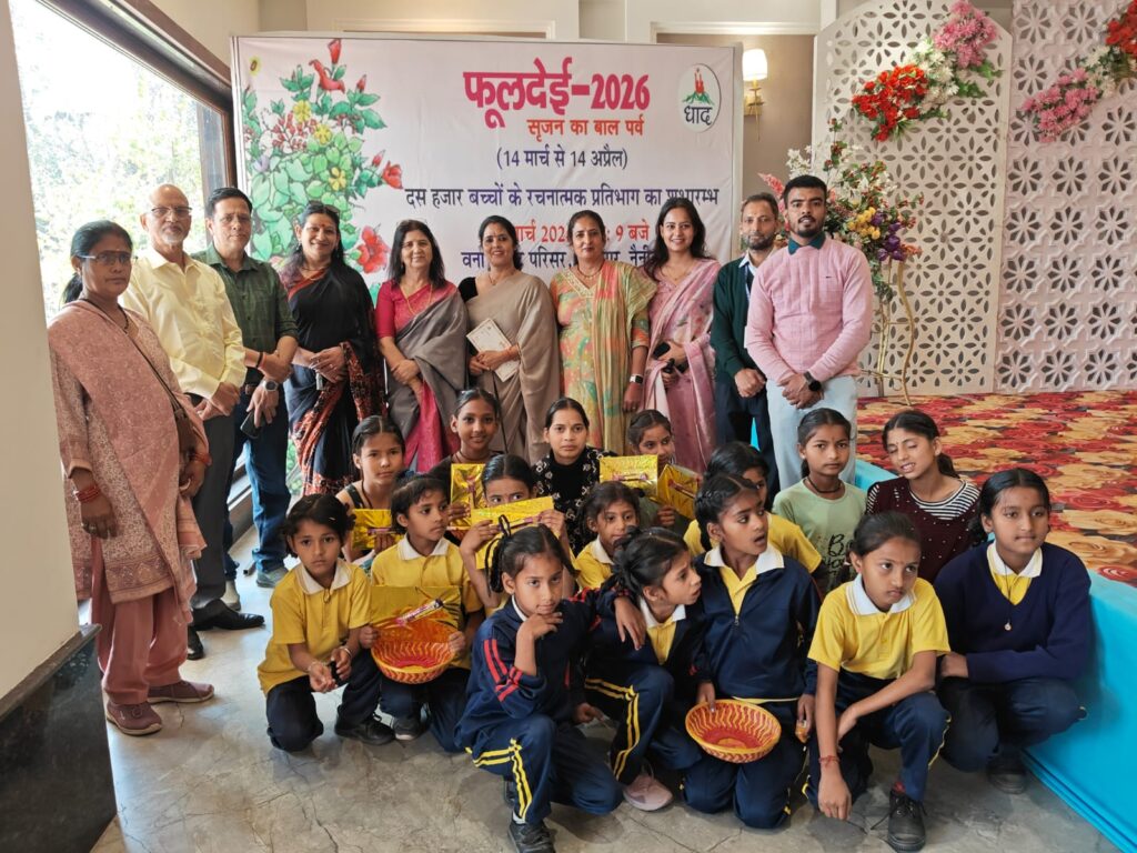 धाद के कोना कक्षा का अध्याय ने सृजन के बालपर्व फूलदेई 2026 का शुभारम्भ रामनगर नैनीताल से किया। जिसमें पारम्परिक फूलदेई की फेरी के साथ बच्चों ने फूलदेई छम्मा देई गाते हुए दहलीजों पर फूल डाले। इसके बाद उत्तराखंड के दस हजार बच्चों के साथ फूलदेई रचनात्मक प्रतिभाग का शुभारम्भ वना रीट्रीट, रामनगर, नैनीताल के परिसर में हुआ। जहाँ  इस अवसर पर क्षेत्र के चार विद्यालय- प्राथमिक विद्यालय भलोंन,उच्च प्राथमिक विद्यालय भलोंन, उच्च माध्यमिक विद्यालय पाटकोट एवं ब्रिलिएंट पब्लिक स्कूल पाटकोट के 100 से अधिक बच्चों ने भाग लिया। बच्चों ने चित्रकला, कविता एवं कहानी के माध्यम से अपनी भावनाओं के रंग बिखेरे। कार्यक्रम में 22 बच्चों को उनकी विशिष्ट रचनाओं के लिए पुरस्कृत किया गया। बच्चों की रंगारंग प्रस्तुतियों ने सबको मंत्रमुग्ध किया। कार्यक्रम का परिचय देते हुए कोना कक्षा का के संयोजक गणेश चंद्र उनियाल ने कहा कि फूलदेई में हर वर्ष प्रदेश के बच्चों को उनकी अभिव्यक्ति के लिए एक मंच देने के लिए यह कार्यक्रम किया जाता है जिसमें हम समाज के सहयोग से उत्तराखंड के दूर दराज के स्कूलों के बच्चों तक फूलदेई शीट भिजवाते हैं जिसमें बच्चे अपने मन के रंग या लेखन करते हैं। श्रेष्ठ शीट को पुरस्कृत किया जाता है।      कार्यक्रम की आयोजक स्नेहल ने बताया कि फूलदेई उत्तराखंड का एक महत्वपूर्ण और प्राचीन लोक पर्व है, जिसे आज की पीढ़ी के बीच फिर से जीवित करने की जरूरत है, उन्होंने कहा कि इसी उद्देश्य से इस पर्व  को दोबारा लोगों के बीच लाने का प्रयास किया जा रहा है, उन्होंने कहा कि इस आयोजन में रामनगर के भलोंन और आसपास के क्षेत्रों के विभिन्न स्कूलों के बच्चों को शामिल किया गया है ताकि उन्हें अपनी संस्कृति और परंपराओं से जुड़ने का अवसर मिल सके। कार्यक्रम का संचालन आशा डोभाल संयोजक कोना कक्षा ने किया।  धाद की ओर से तन्मय ममगाईं, सचिव धाद, नीना रावत, सचिव स्मृति वन ने धाद के विभिन्न कार्यक्रमों की जानकारी साझा की इस अवसर पर वना रीट्रीट के प्रदीप रावत, जंगल ऍक्सपी के मनीष, रस्या से मोहन पाठक, शुभम शर्मा के साथ प्रतिभाग में भाग लेने वाले विद्यालयों के शिक्षक शिक्षिकाएं एवं स्थानीय जनता उपस्थित रहे।