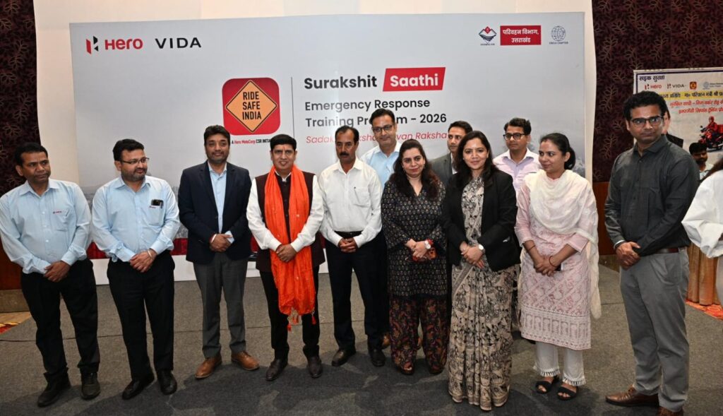 परिवहन विभाग, उत्तराखण्ड द्वारा Hero MotoCorp के CSR कार्यक्रम Ride Safe India के अंतर्गत, उप क्षेत्रीय परिवहन कार्यालय (ARTO), हरिद्वार के सहयोग से “सुरक्षित साथी – रोड सेफ्टी एवं इमरजेंसी रिस्पॉन्स प्रशिक्षण कार्यक्रम” का सफल आयोजन आज हरिद्वार स्थित एक स्थानीय होटल में किया गया।जिसका शुभारंभ मुख्य अतिथि परिवहन मंत्री प्रदीप बत्रा ने दीप प्रज्वलित कर किया।कार्यक्रम में विशिष्ट अतिथि अपर जिलाधिकारी पी आर चौहान, संभागीय परिवहन अधिकारी डॉ अनीता चमोला, संभागीय परिवहन अधिकारी संदीप सैनी, सीओ ट्रैफिक बिपेंदर सिंह,प्लांट एच आर हेड पंकज भट्ट, प्लांट हेड सुनील कुमार मौजूद रहे।