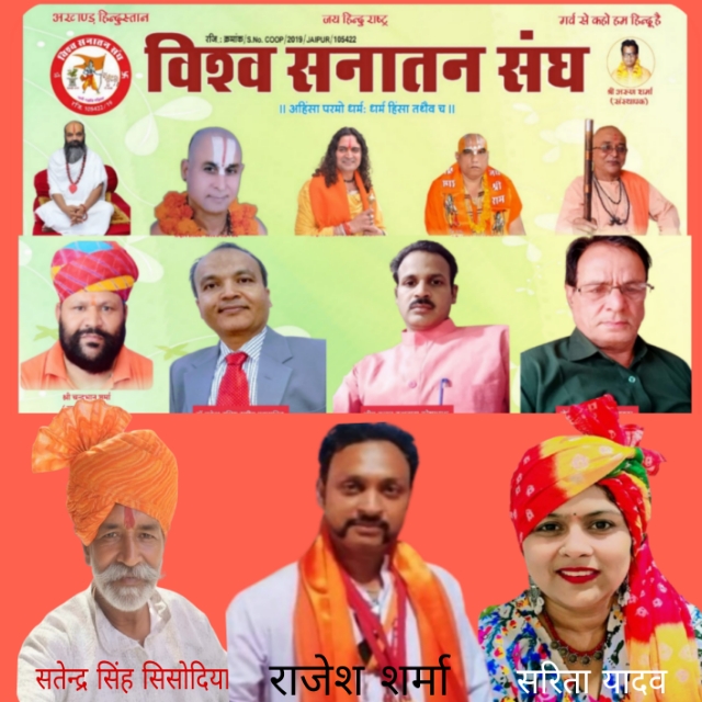 जयपुर। विश्व सनातन संघ की विशेष बैठक लक्ष्य एसोसिएट, निवारू रोड, झोटवाड़ा में सम्पन्न हुई। बैठक की अध्यक्षता राष्ट्रीय सलाहकार जेपी शर्मा तथा मुख्य सचिव एवं राष्ट्रीय उपाध्यक्ष ने संयुक्त रूप से की। बैठक में भारत में संगठन के विस्तार पर विस्तृत चर्चा की गई और कई महत्वपूर्ण निर्णय लिए गए। संगठन के वरिष्ठ पदाधिकारियों, राष्ट्रीय महिला अध्यक्ष संगीता शर्मा,राष्ट्रीय महासचिव डॉ राकेश वशिष्ठ राष्ट्रीय सलाहकार जे पी शर्मा, राष्ट्रीय महामंत्री हनुमान स्वामी, उपाध्यक्ष प्रभात शर्मा की अनुशंसा पर सतेन्द्र सिंह सिसोदिया को राष्ट्रीय सम्पर्क प्रमुख तथा राजेश शर्मा को गुजरात प्रदेश अध्यक्ष व सरिता यादव को गुजरात महिला अध्यक्ष पद पर नियुक्त किया गया। राजेश शर्मा को उत्तर भारत में संगठन विस्तार की अहम जिम्मेदारी सौंपी गई है। बैठक में राष्ट्रीय अध्यक्ष चन्द्रभान शर्मा, कोषाध्यक्ष भीम कुमार कुशवाहा, मुख्य सचिव शंभु दयाल शर्मा, राष्ट्रीय अध्यक्ष ने अन्य प्रदेश अध्यक्षों से फोन पर चर्चा करते हुए महाराष्ट्र से मयूर मिश्रा, उत्तराखंड प्रभारी वेणीराम उनियाल, झारखंड विकास मंडल, मध्य प्रदेश नरेंद्र सिंह अनेकों पदाधिकारियों की सहमति एवं सदस्य उपस्थित रहे। नियुक्ति उपरांत नवनियुक्त पदाधिकारियों ने संगठन के शीर्ष नेतृत्व के प्रति आभार व्यक्त करते हुए गुजरात अध्यक्षों ने राष्ट्रीय अध्यक्ष चन्द्र भान शर्मा को संपूर्ण गुजरात में संगठन के उद्देश्यों की पूर्ति हेतु पूर्ण समर्पण के साथ कार्य करने का आश्वासन दिया । उन्होंने देशभर में सनातन एकता संकल्प अभियान को मजबूत बनाने का वचन दिया। बैठक को संबोधित करते हुए राष्ट्रीय अध्यक्ष चन्द्रभान शर्मा ने कहा कि यह बैठक संगठन की मजबूती, सनातन धर्म की एकता महिला सुरक्षा की दृष्टि से अत्यंत महत्वपूर्ण रही। उन्होंने घोषणा की कि जल्द ही सनातन नारी एकता सुरक्षा अभियान पूरे देश में सशक्त रूप से प्रारंभ किया जाएगा। उन्होंने यह भी कहा कि हर भारतीय को धर्म और राष्ट्र व महिला की रक्षा के लिए दृढ़ संकल्पित होना चाहिए तथा असामाजिक गतिविधियों पर अंकुश लगाने के लिए शासन-प्रशासन के साथ समन्वय स्थापित किया जाएगा, ताकि देश और समाज में शांति एवं सद्भाव बना रहे। बैठक के अंत में अध्यक्ष चन्द्रभान शर्मा ने सभी पदाधिकारियों और सदस्यों का आभार व्यक्त करते हुए संगठन की एकता, सशक्तिकरण और सनातन धर्म के प्रचार-प्रसार का आह्वान किया।