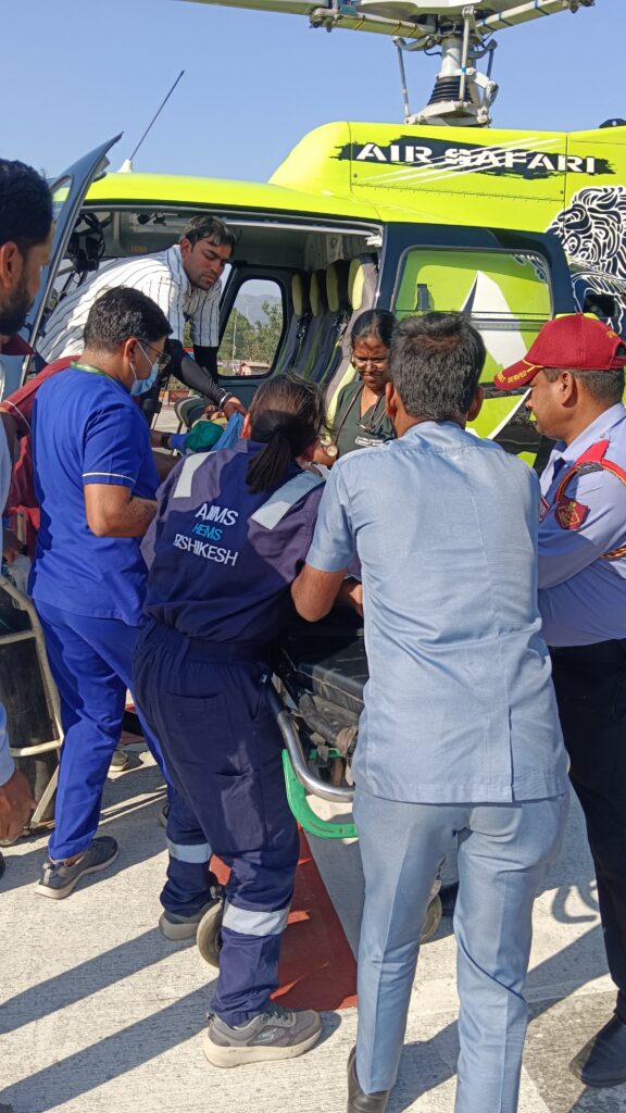 जिला प्रशासन और स्वास्थ्य विभाग की तत्परता से बची जान, हार्ट अटैक के मरीज को हेली सेवा से एम्स ऋषिकेश पहुंचाया गया