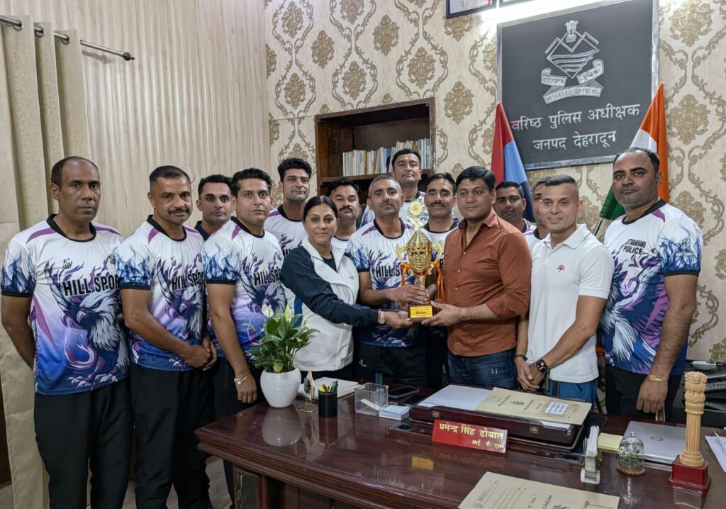 विजेता टीम ने एसएसपी देहरादून से शिष्टाचार भेंट कर प्रदान की विजेता ट्राफी।