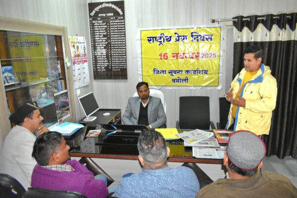 राष्ट्रीय प्रेस दिवस के अवसर पर सम्मानित पत्रकारों ने अपने-अपने विचार रखें चमोली 16 नवंबर 2025 रविवार को राष्ट्रीय प्रेस दिवस के अवसर पर जिला सूचना कार्यालय चमोली में एक गोष्ठी आयोजित की गई जिसमें जनपद के सभी सम्मानित पत्रकार बंधुओ ने इस वर्ष की थीम “बढ़ती भ्रामक सूचनाओं के बीच प्रेस की विश्वसनीयता के…